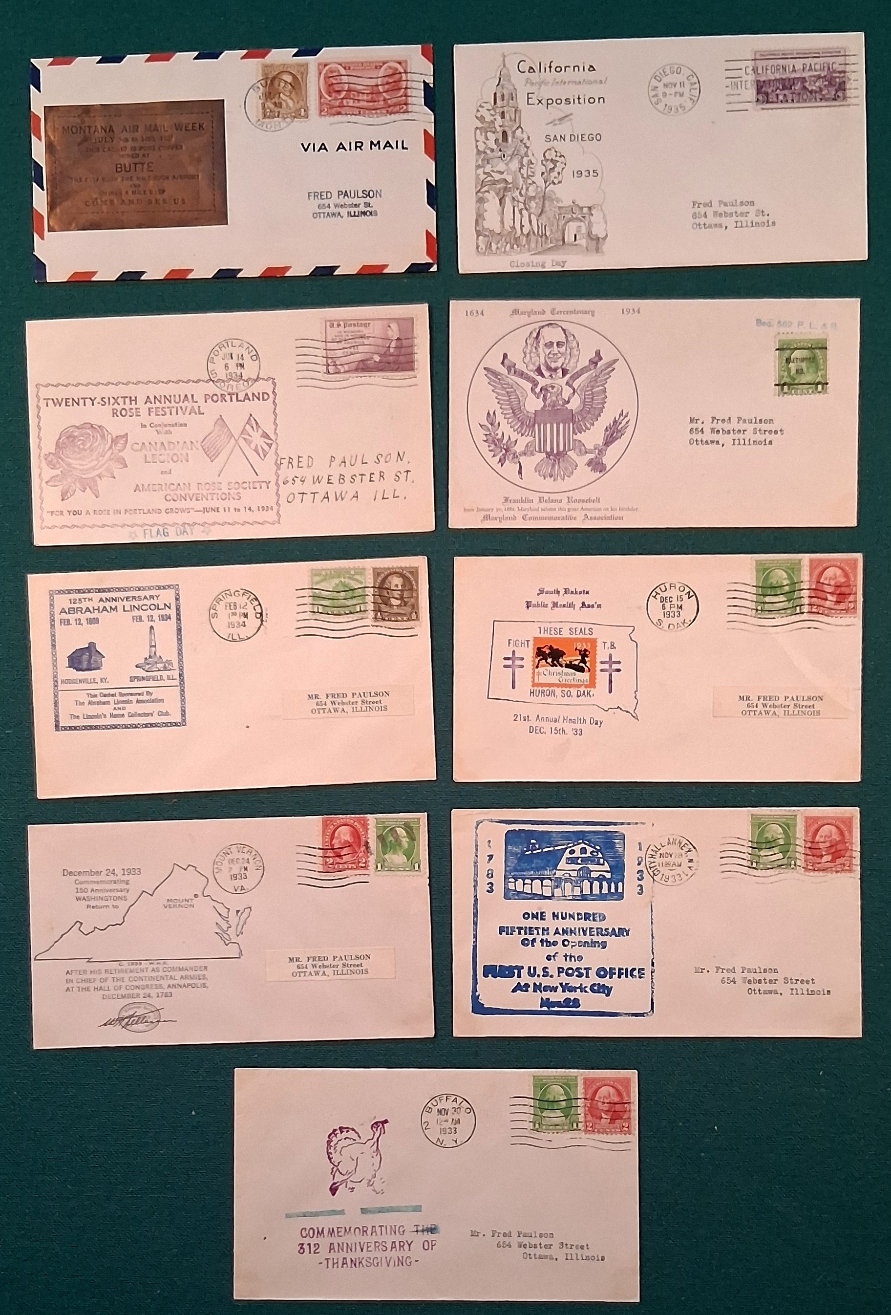| USA, 9 Commemorating covers fro 1933 - 1937 |