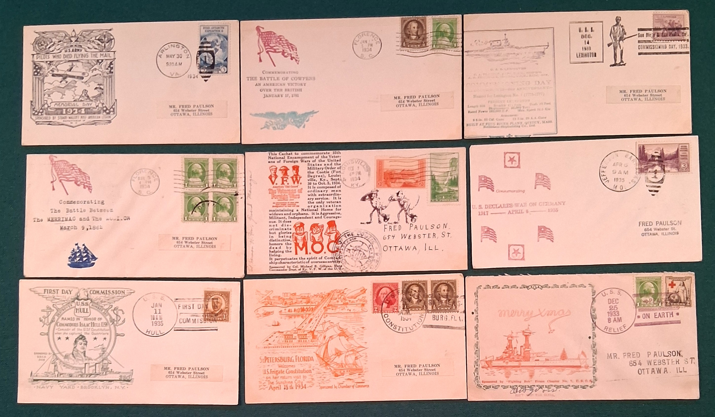 USA, 9 Commemorating covers from 1933 - 1935