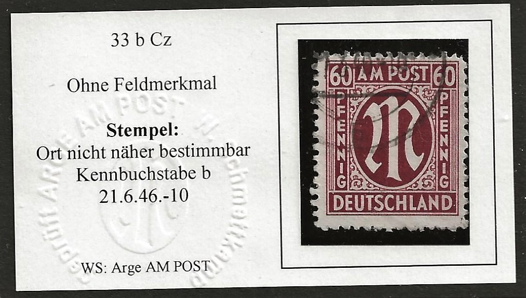 | Germany, A M POST 2 nr 33 b C used, one geprüft Closed |