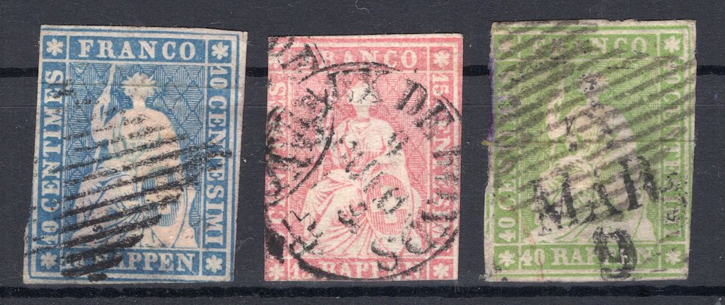 Dwitzerland: Three Classic Stamps Sitting Helvetia
