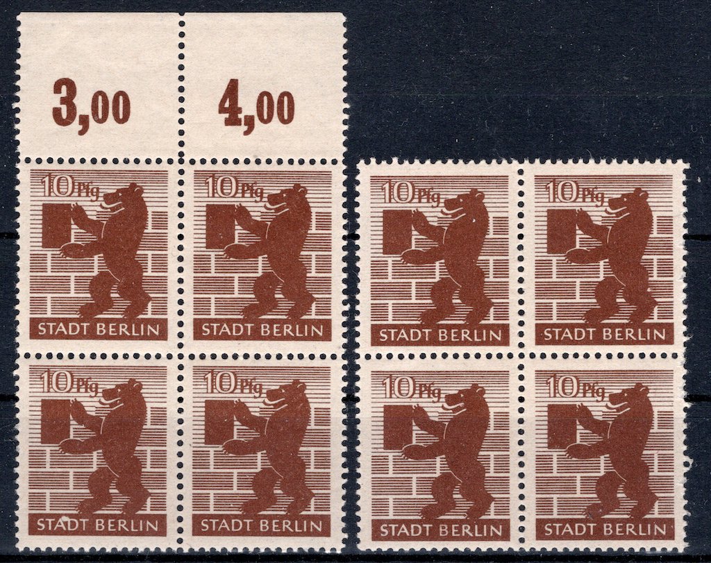 | Soviet Zone: Berlin Bear 10 Pfennig Two Plate Errors MNH |