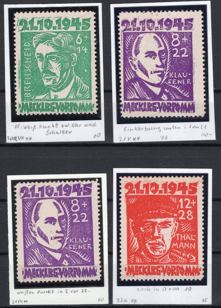 | Soviet Zone: Mecklenburg 4 Better Plate Errors MNH |
