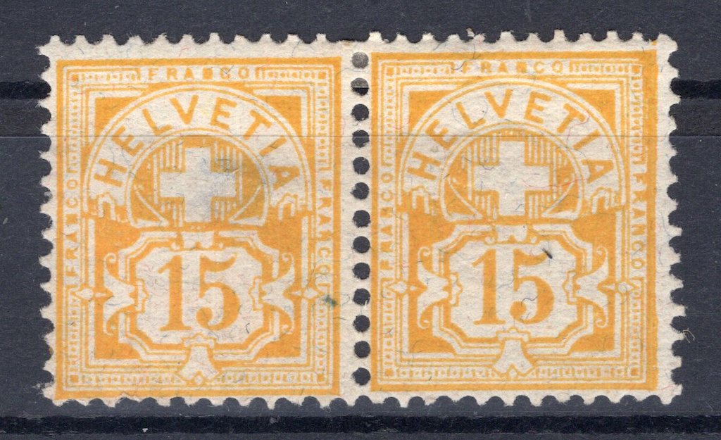 Switzerland: 1882 Definitive 15 Rappen Yellow Mint Pair