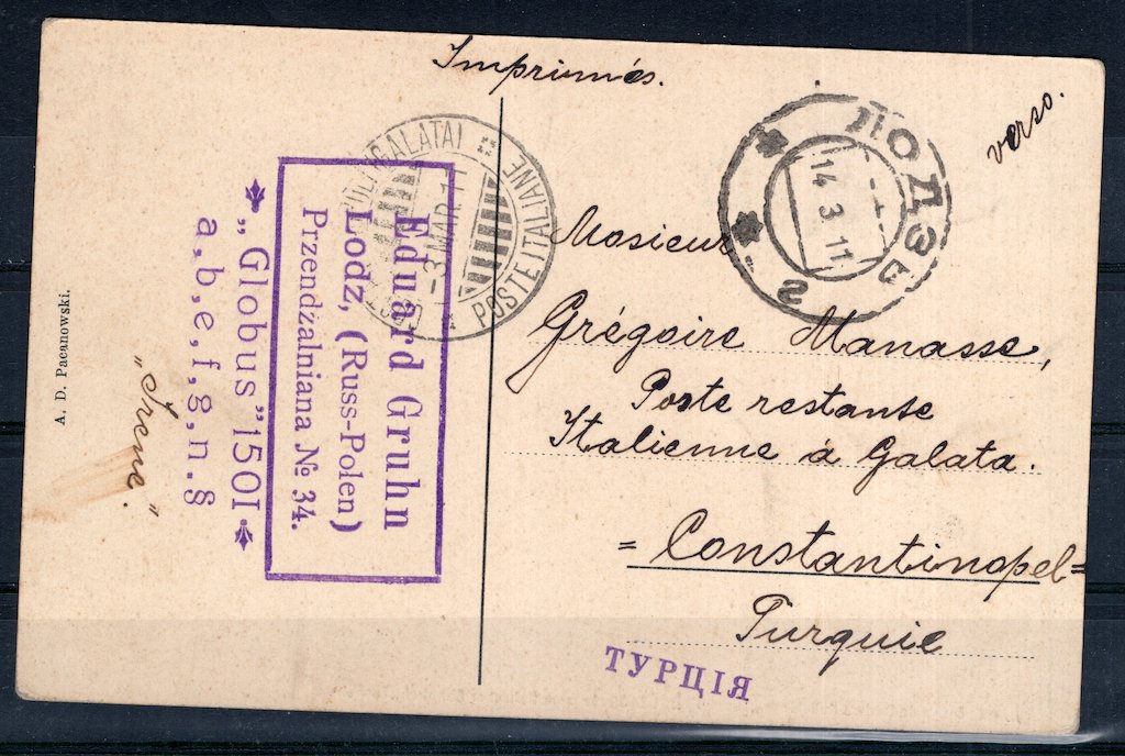 Russia: 1911 PPC from Russian Poland to Constantinopel* -> (Item #: 10248532)