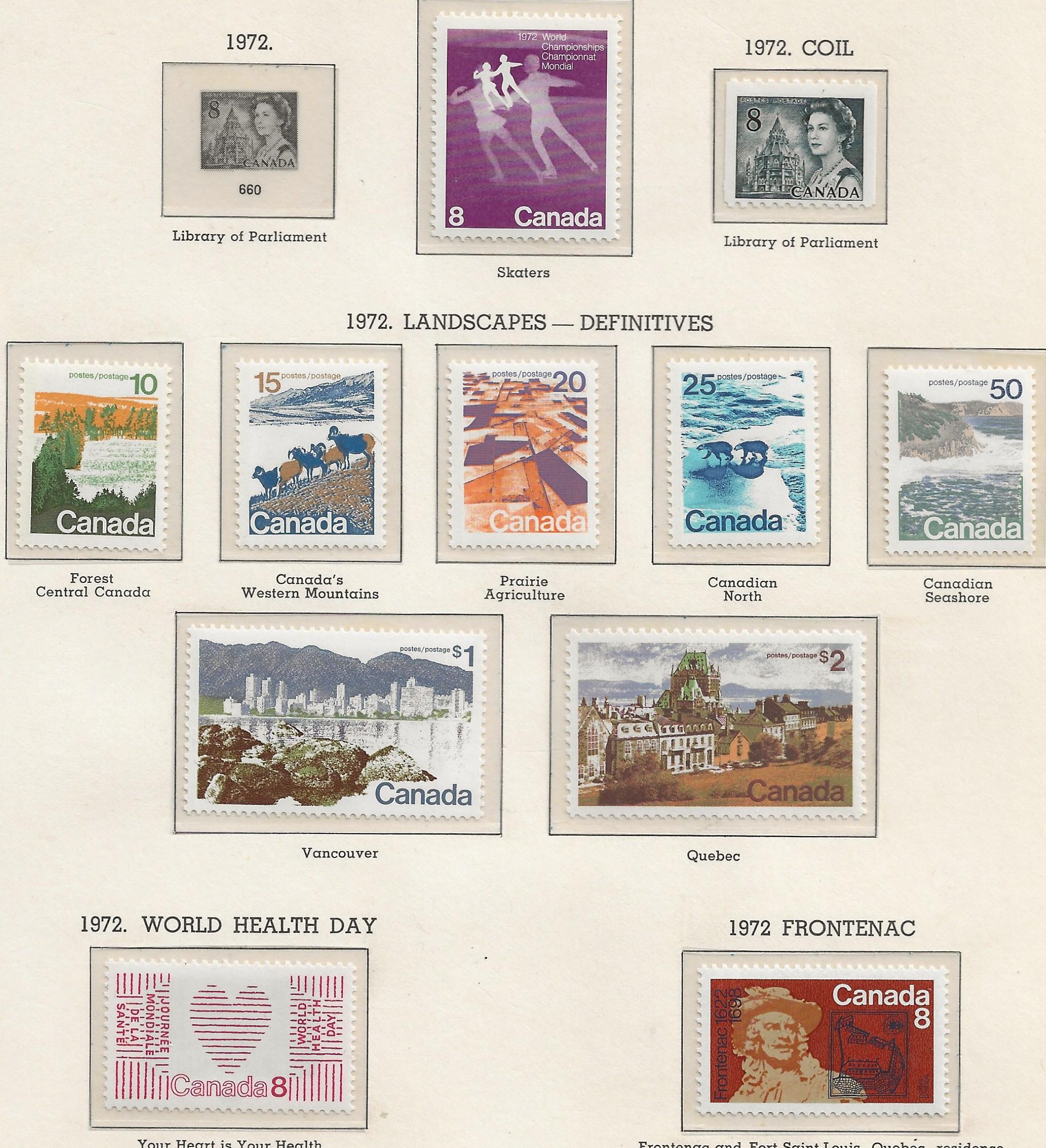 | Canada, 10 pages with Mint stamps up to 2$ from 1969 to 1972 |