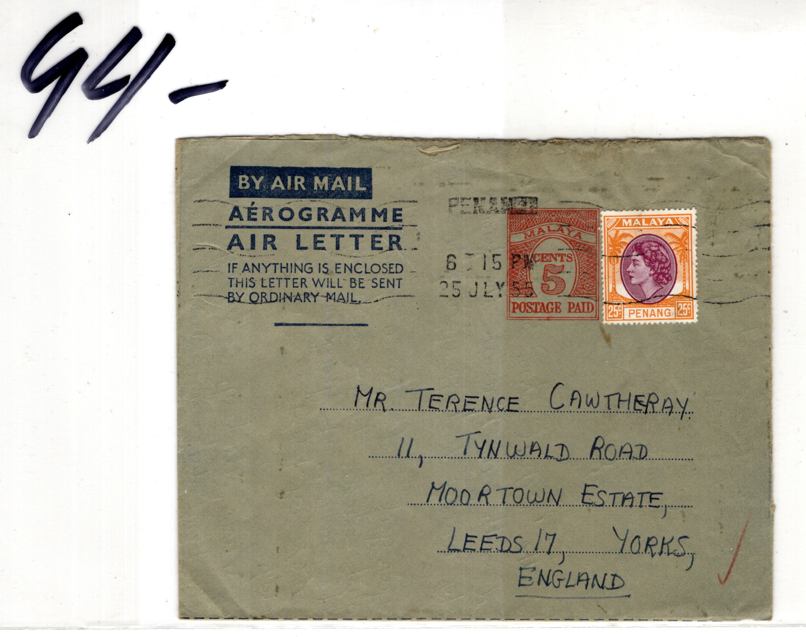 9902253 Malaya Penang Scarce Letter!