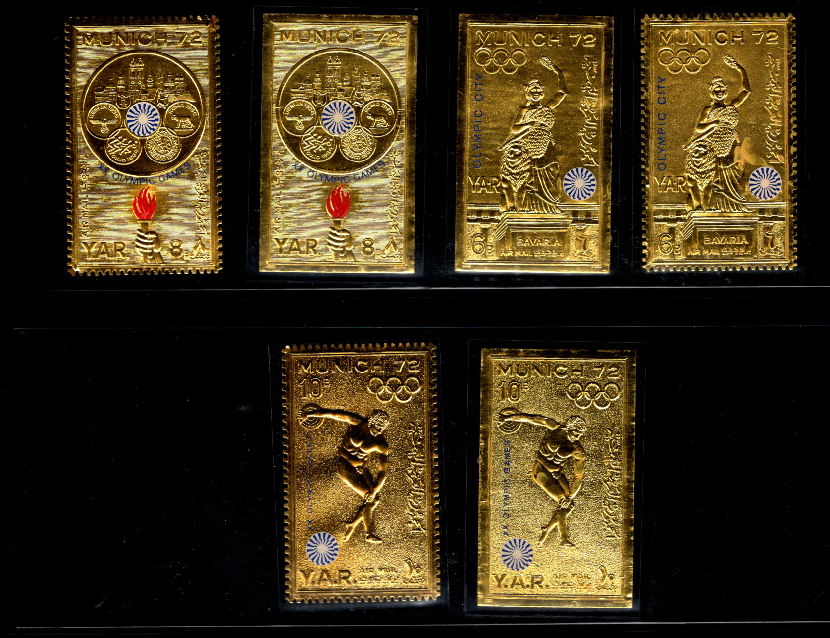 Yemen Munich 1972 Gold Stamps WOW! 6 items!