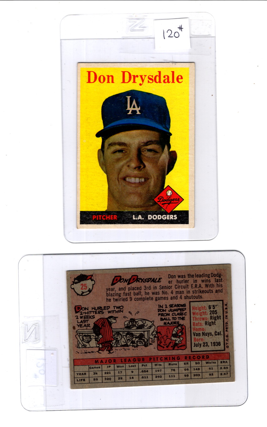 9906598 Baseball Topps 1958 #25 Don Drysdale Quality HiCV* -> (Item #: 9906598)