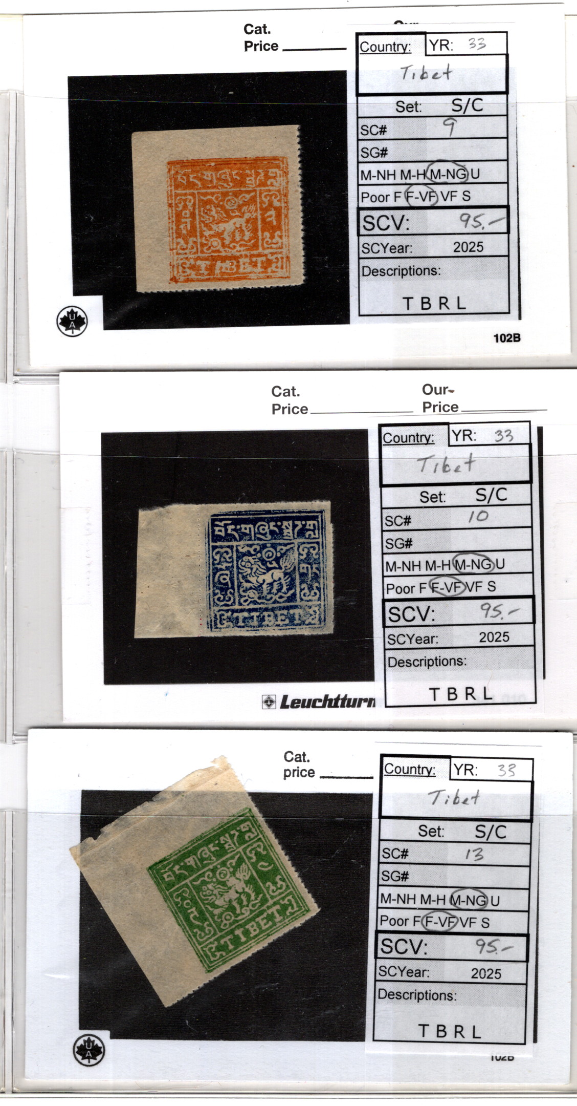 Tibet Sc 9,10,13 VF Mint CV 285$