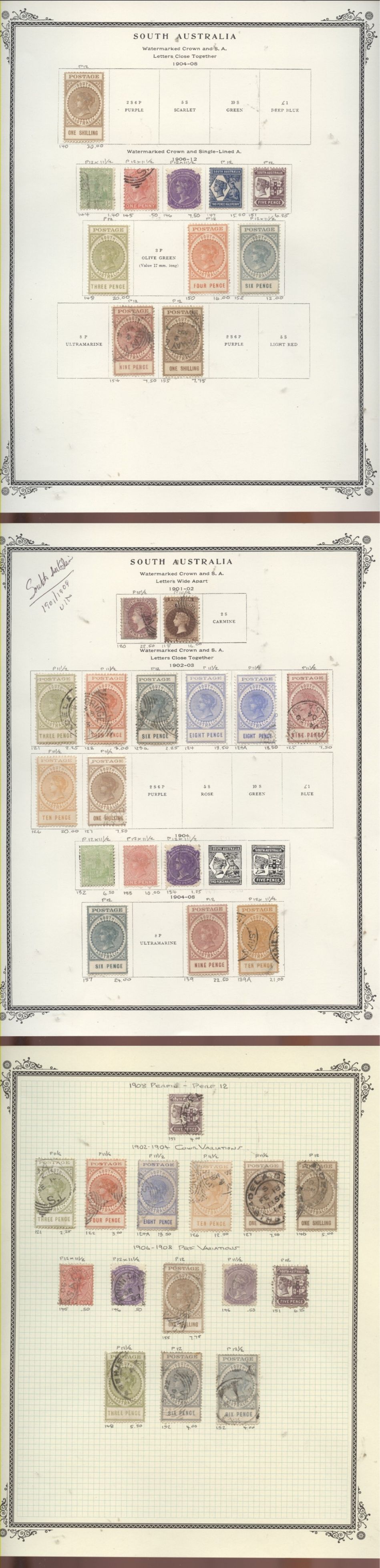 South Australia nice pages selection 1901/1908 FVF U H