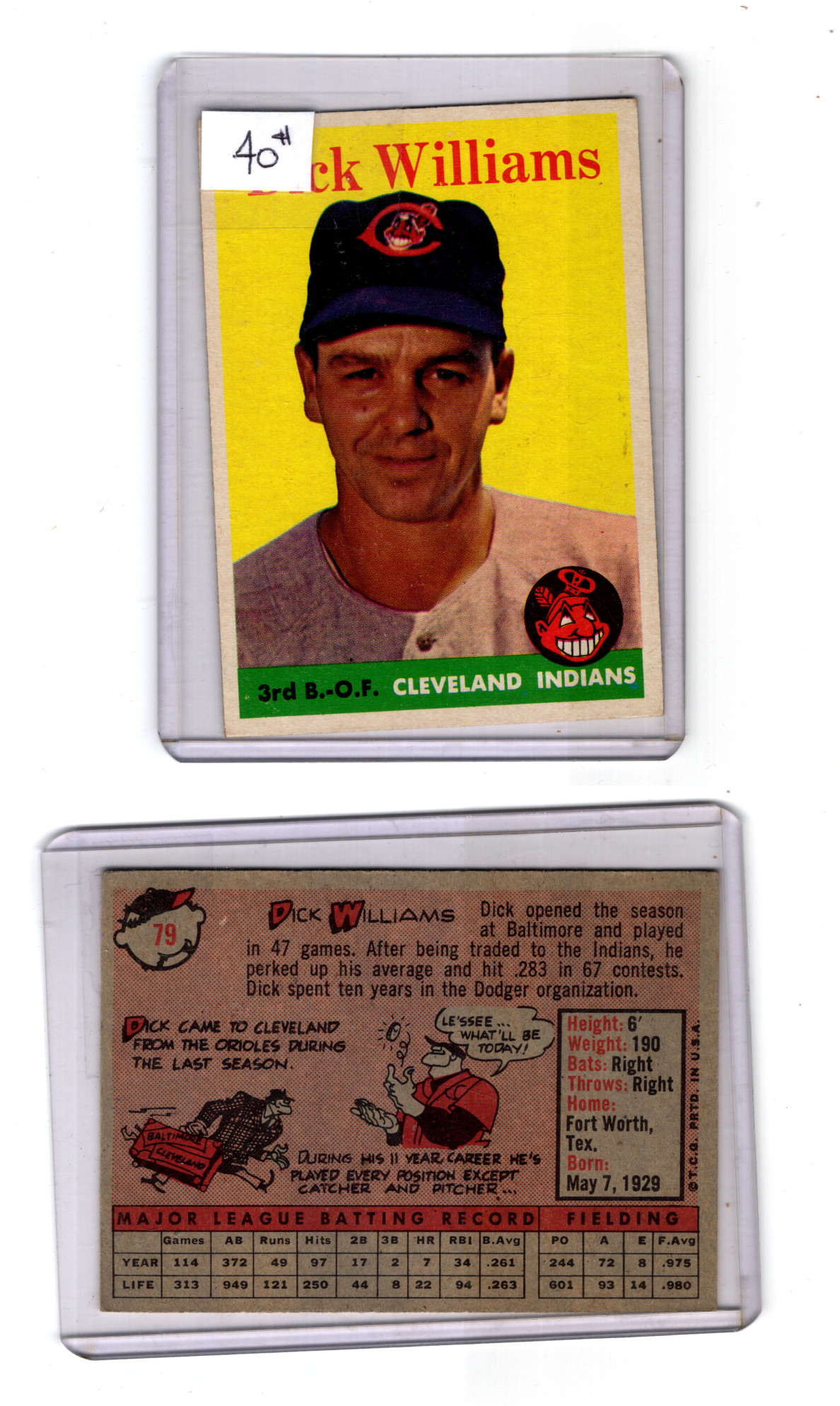 9907139 Baseball Dick Williams Topps 1958 #79 Nice Quality!* -> (Item #: 9907139)