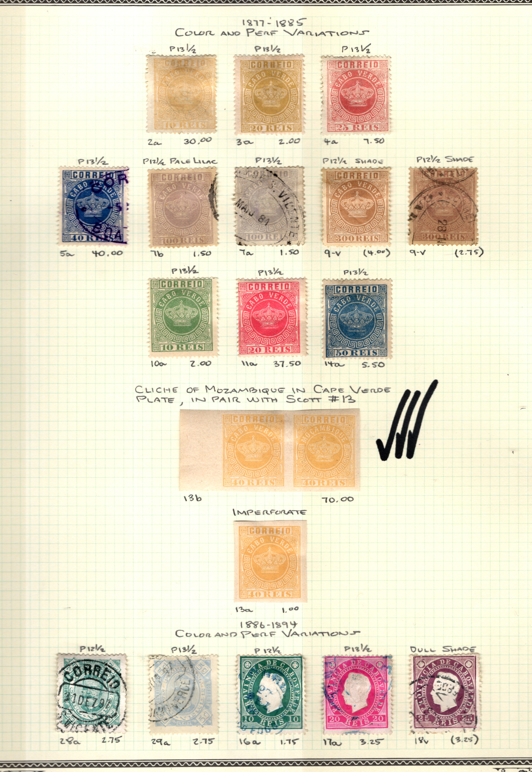 Cape Verde Superb Page 1877/... Color Variations IMPERF