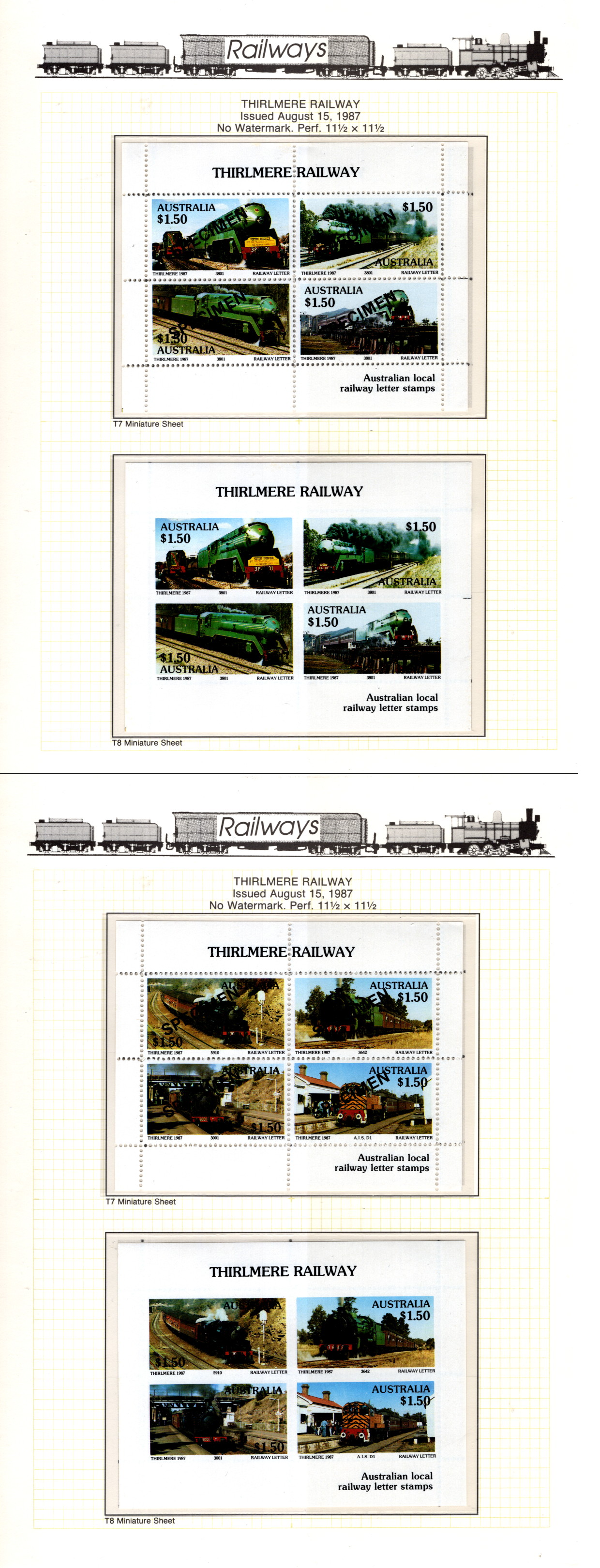 Australia Trains 1987 VFNH IMPERF/OVPT SP