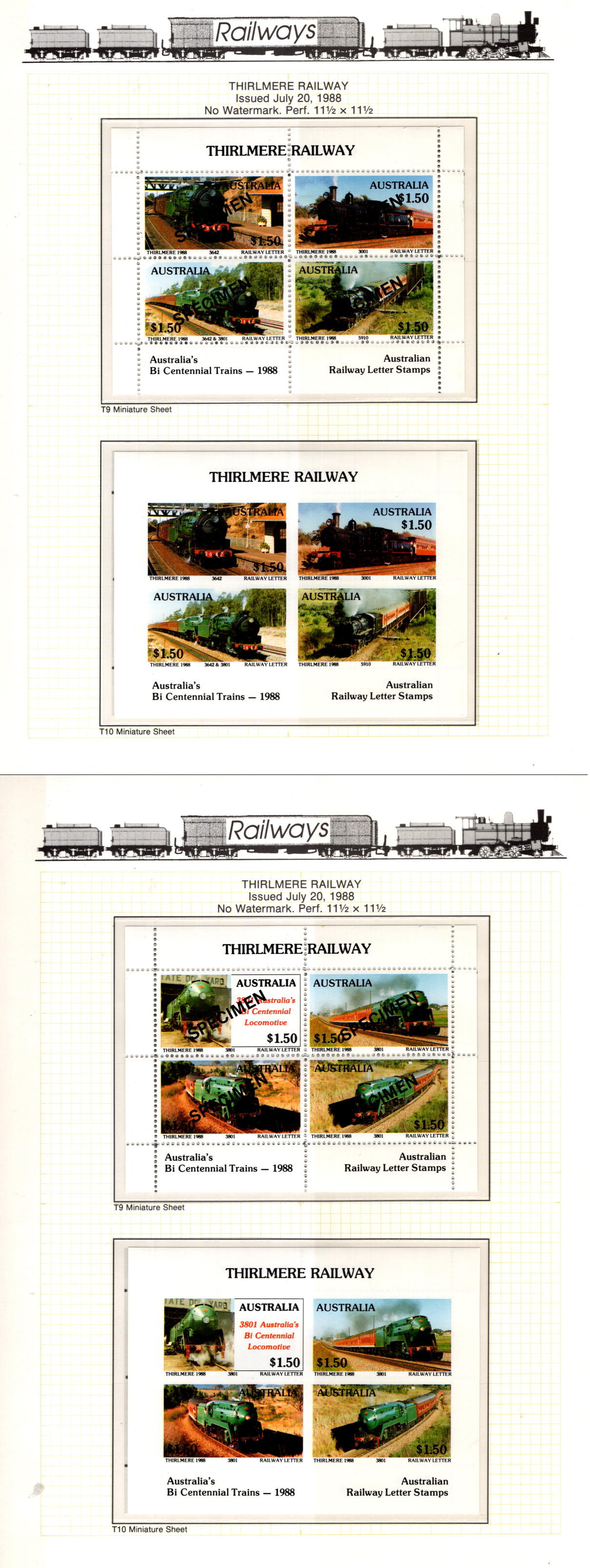 9909001 Australia Trains 1988 VFNH IMPERF/OVPT SP 4x* -> (Item #: 9909001)