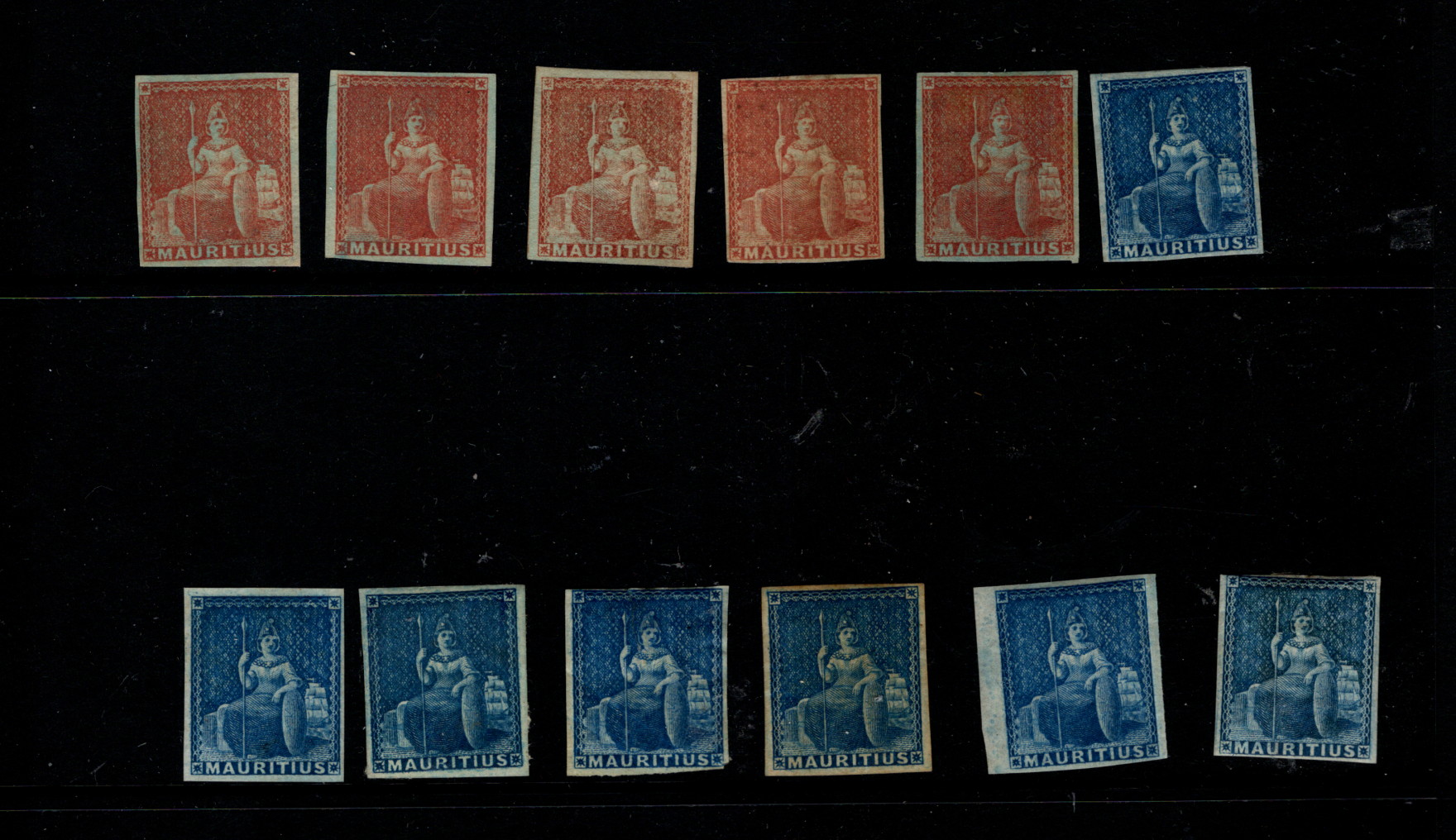 9909613 Mauritius Scarce IMPerf with Shades HICV VF H OG* -> (Item #: 9909613)