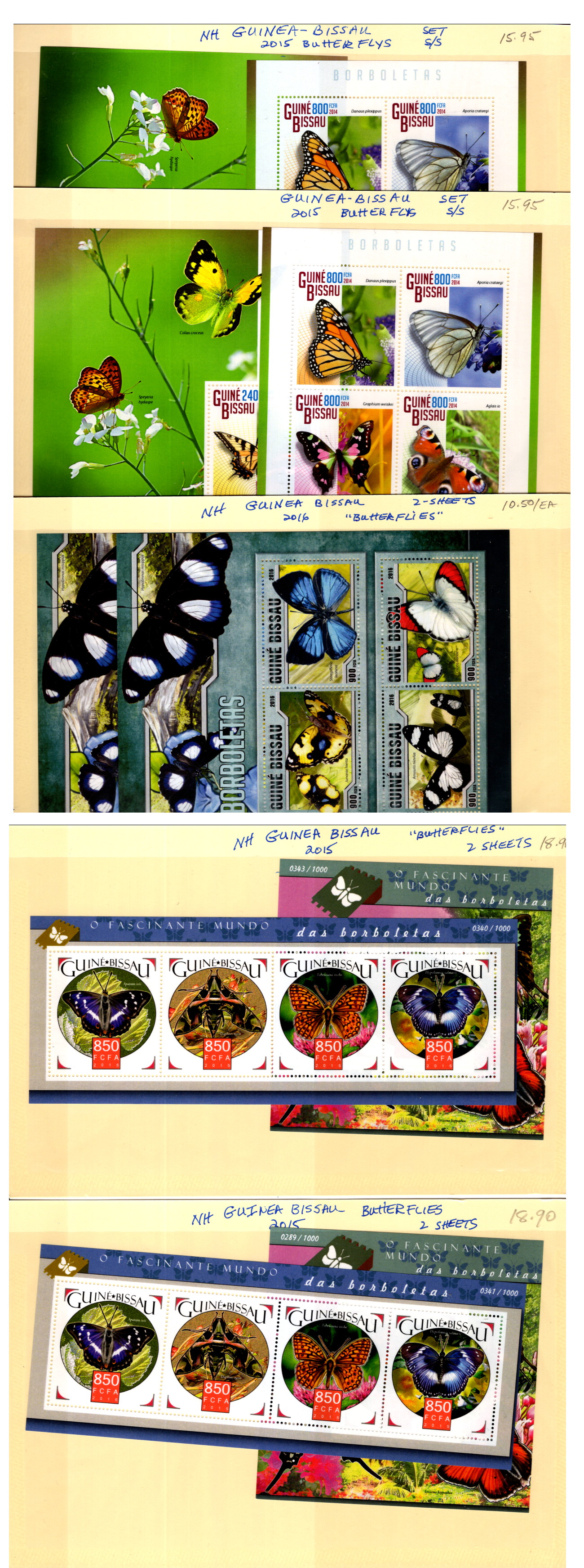 9910074 Guinea Bissau Scarce NH Sheets Butterflies