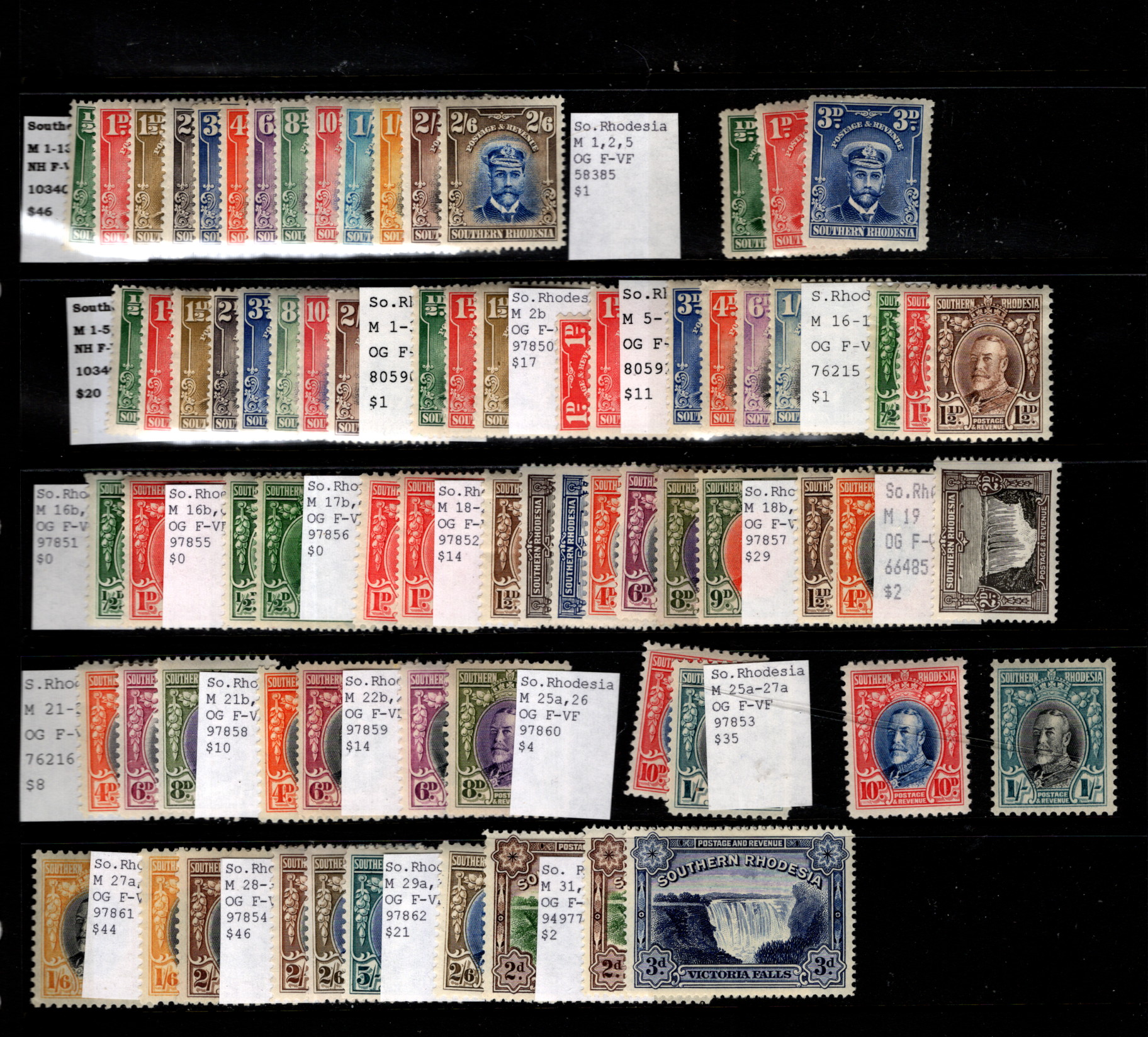9910620 S. Rhodesia Superb MINT LOT KE to 5/- HiCV