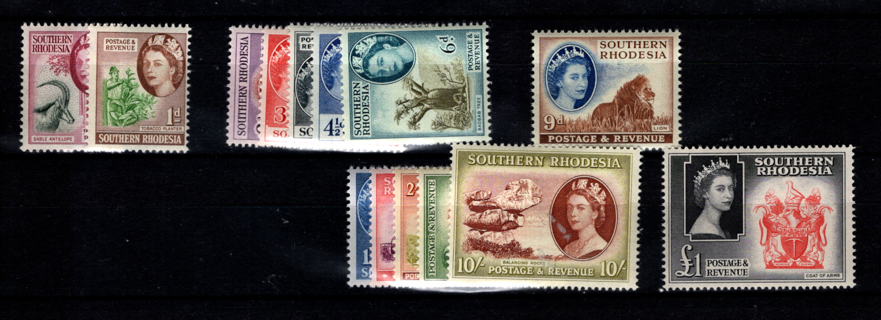 9910623 S. Rhodesia Superb MINT NH SET to 20/- QEII* -> (Item #: 9910623)