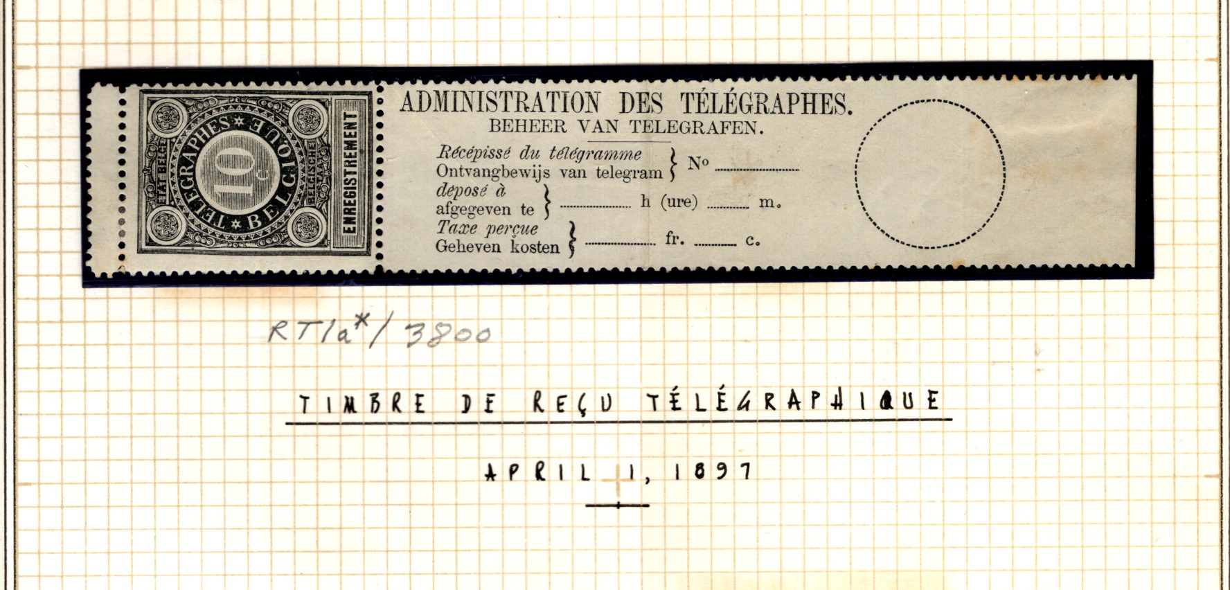Belgium RT #1a F-VF H OG HiCV