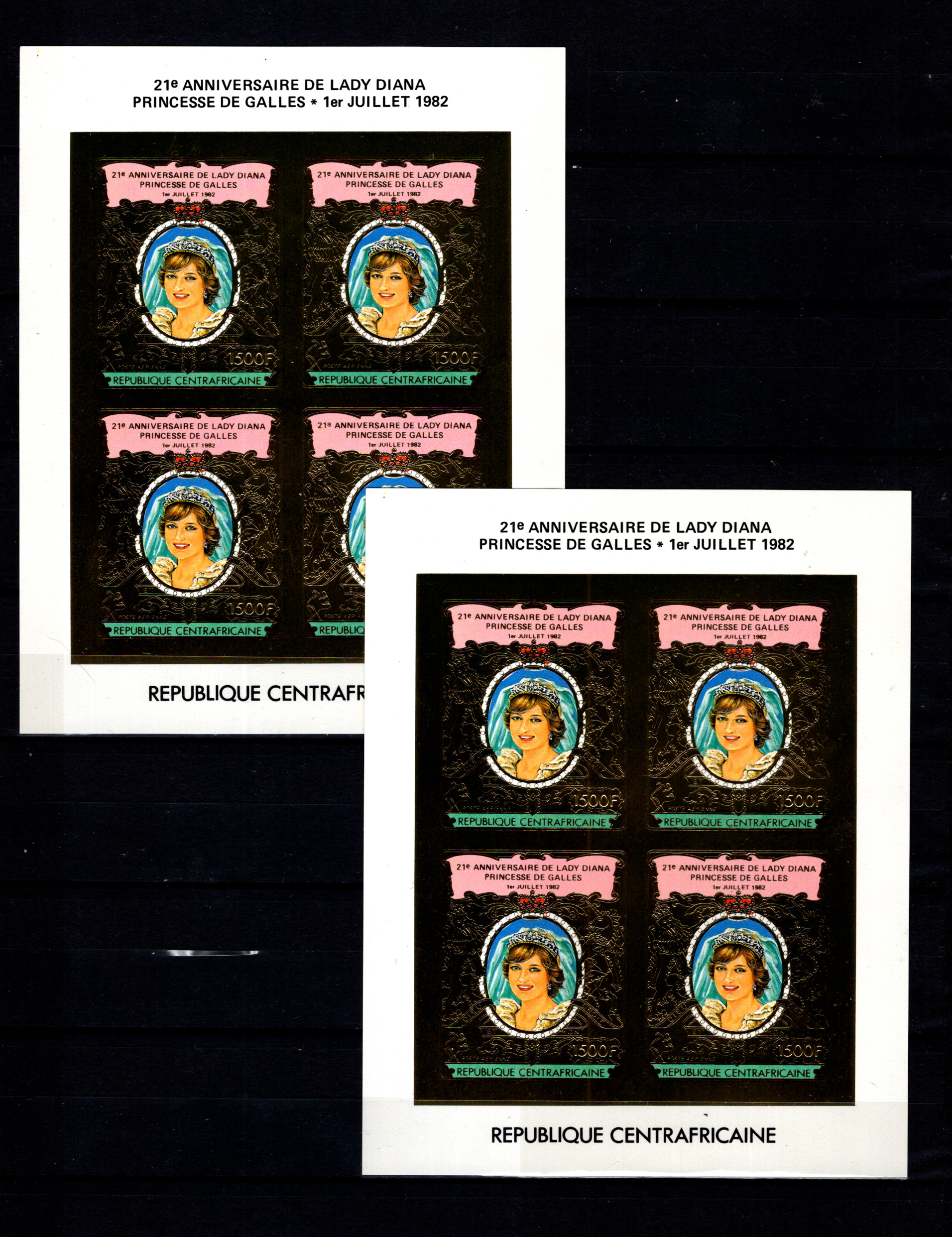 9910986 Fr Central Africa Scarce 2x IMPERF Sheets GOLD LOOK