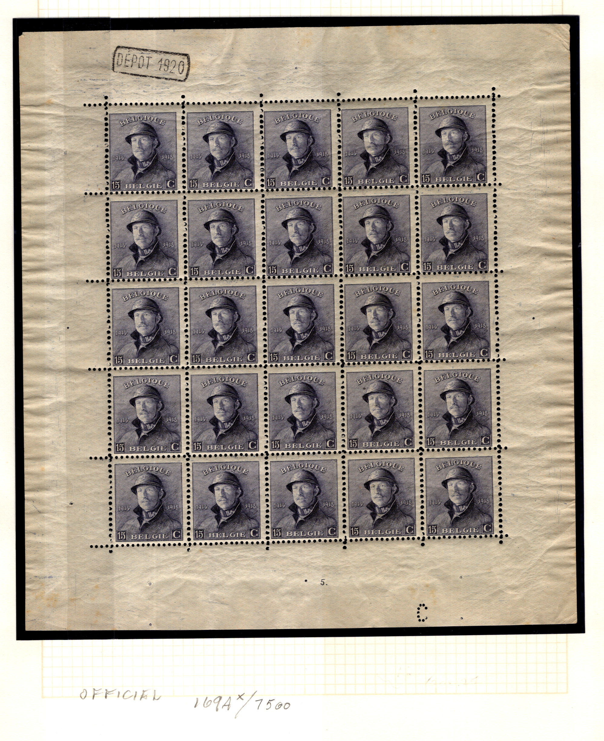 Belgium RR Sheet Ti Casque 15c NH Depot 1920